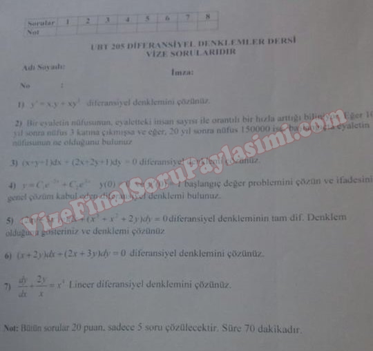 Diferansiyel Denklemler Dersi Vize Soruları 16-09-2014, 18:09