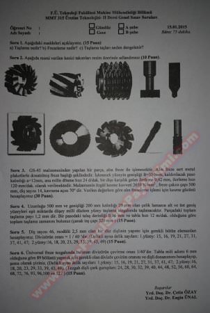 Üretim Teknolojisi -2 Final Soruları - 2015 16-01-2015, 21:44