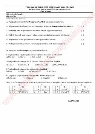 Temel Bilgi Teknolojisi Kullanımı Vize Soruları 4-09-2015, 22:10