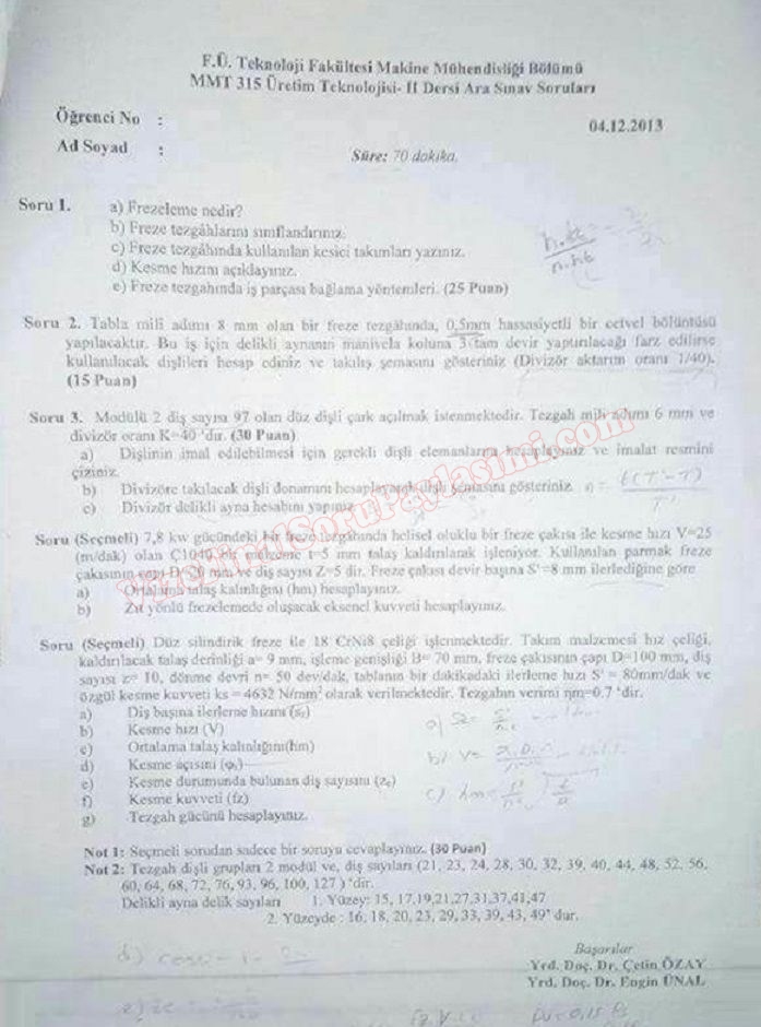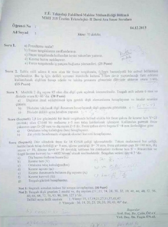Vize ve Final Soruları / Fırat Üniversitesi / Üretim Teknolojisi -2 Dersi