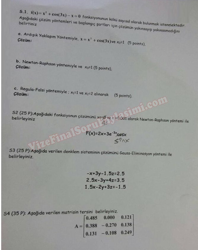 Mühendislikte Sayısal Yöntemler Dersi Bütünleme Soruları -2018 16-01-2018, 21:35