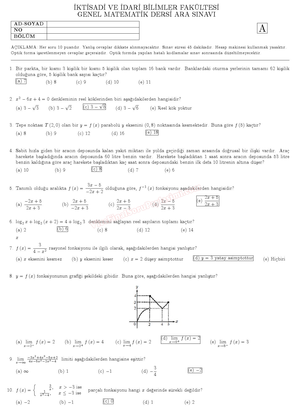 Genel Matematik Dersi Bütünleme Soruları ve Cevapları 23-01-2018, 09:45