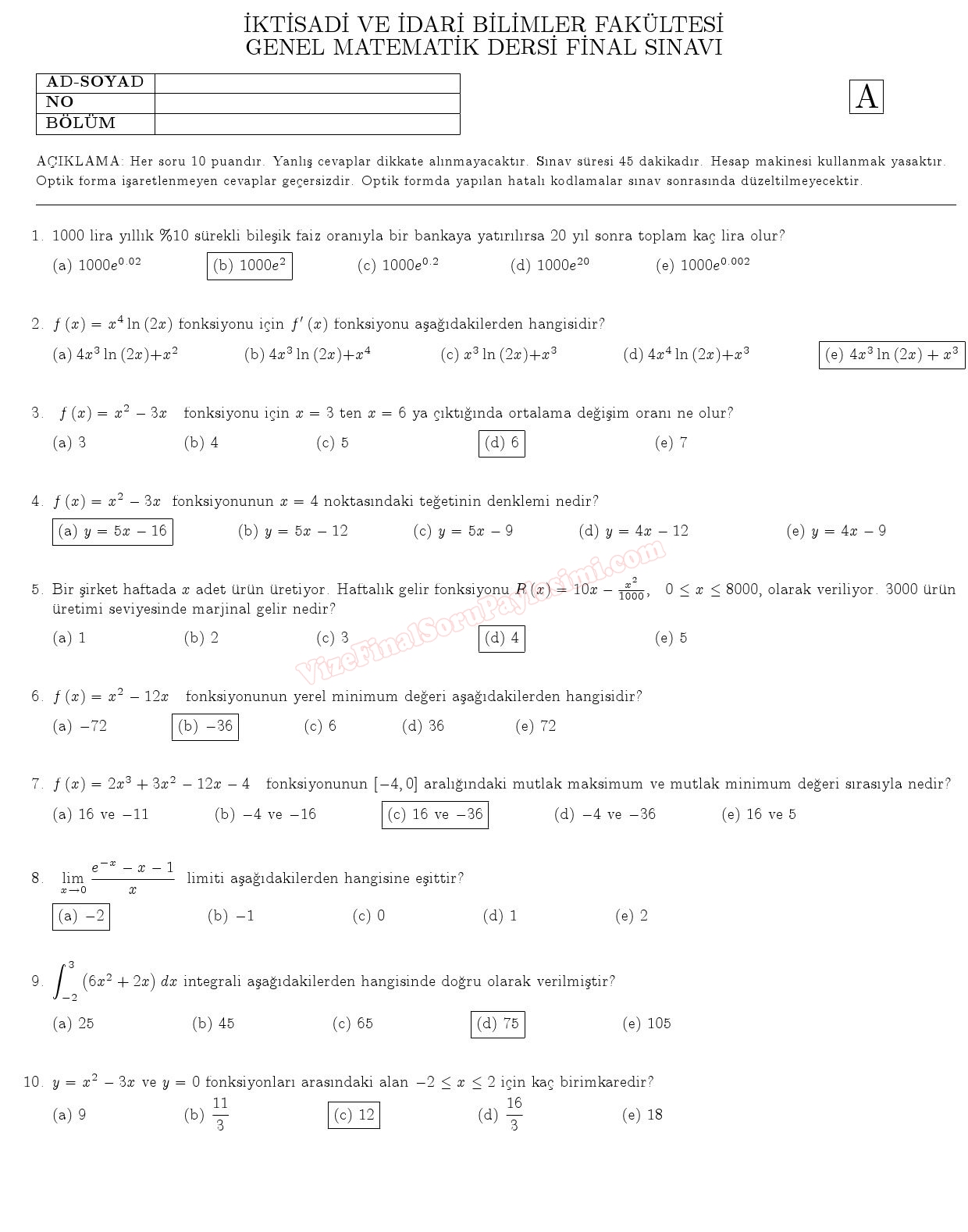 Genel Matematik Dersi Final Soruları 16-11-2015, 01:50
