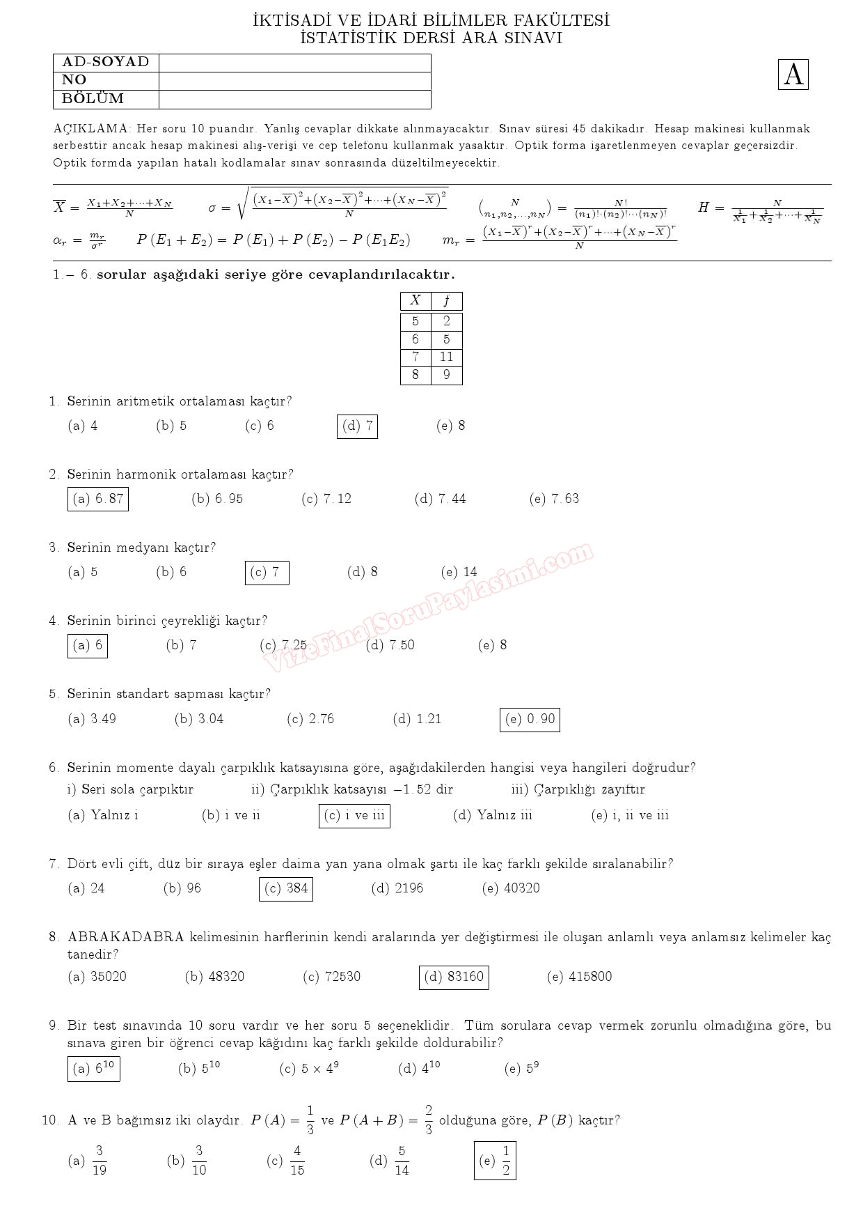 Olasılık Ve İstatistik Vize Soruları Ve Cevapları 17-10-2015, 17:31