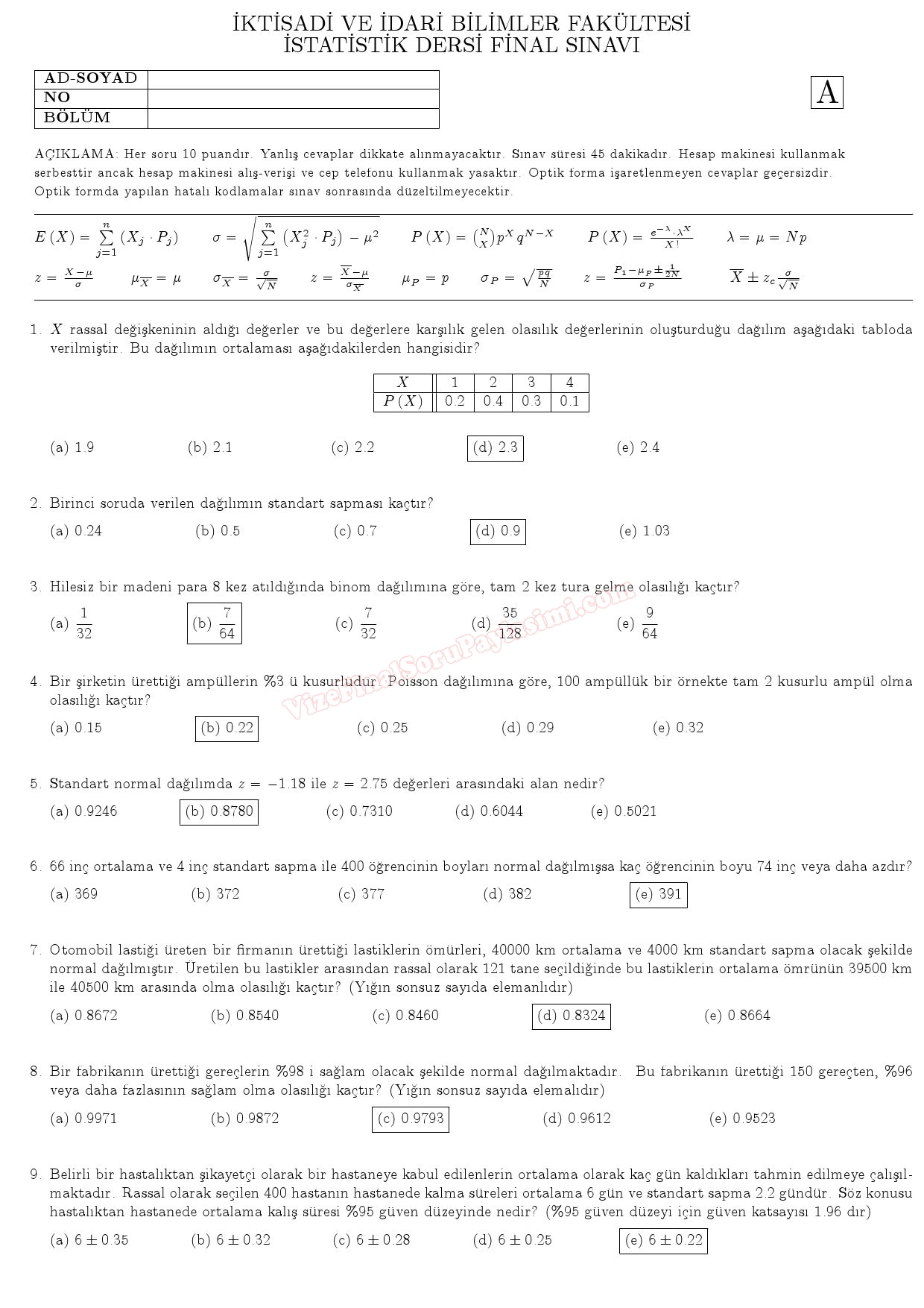 İstatistik Dersi Final Soruları ve Cevapları (A-Grubu) 9-01-2016, 16:56