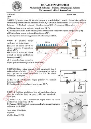 Mukavemet 1 Final Soru ve Cevapları 14-01-2016, 00:13