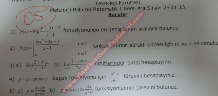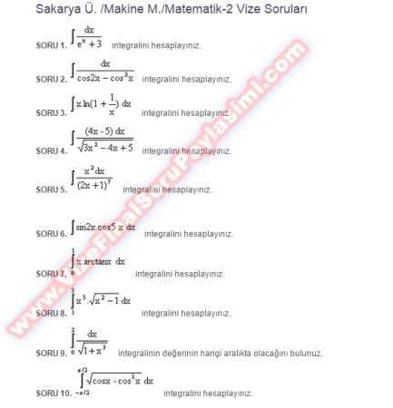 Vize ve Final Soruları / Sakarya Üniversitesi / Matematik-2
