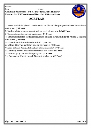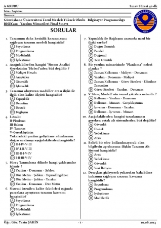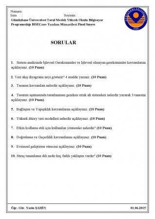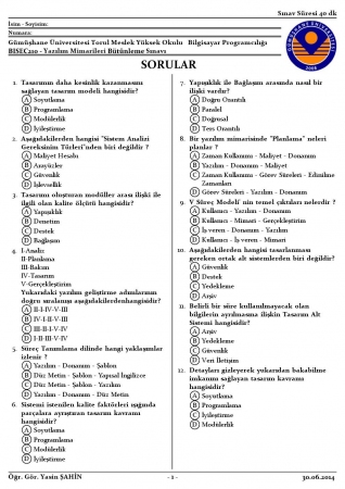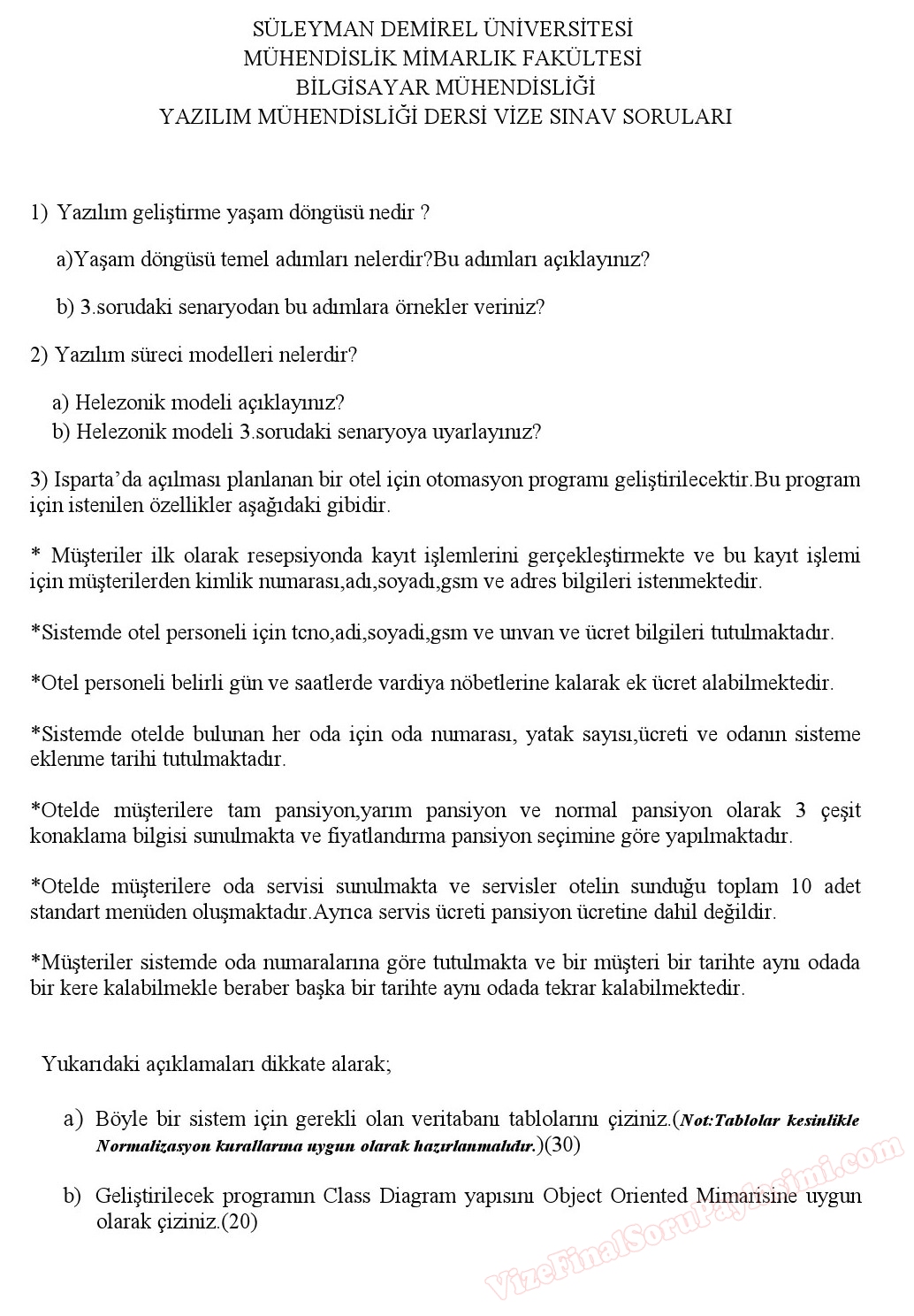 Vize ve Final Soruları / Süleyman Demirel Üniversitesi / Yazılım Mühendisliği Dersi