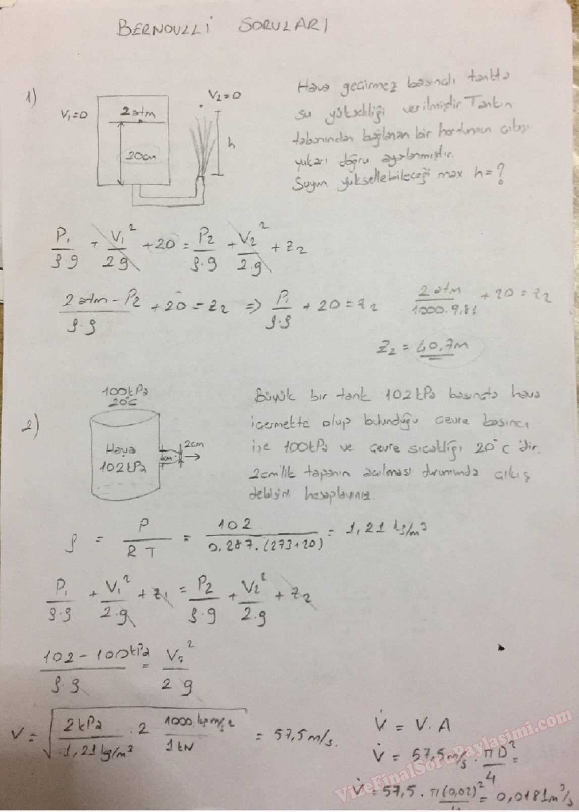 Akışkanlar Mekaniği -1 Bernoulli Çıkmış Soruları