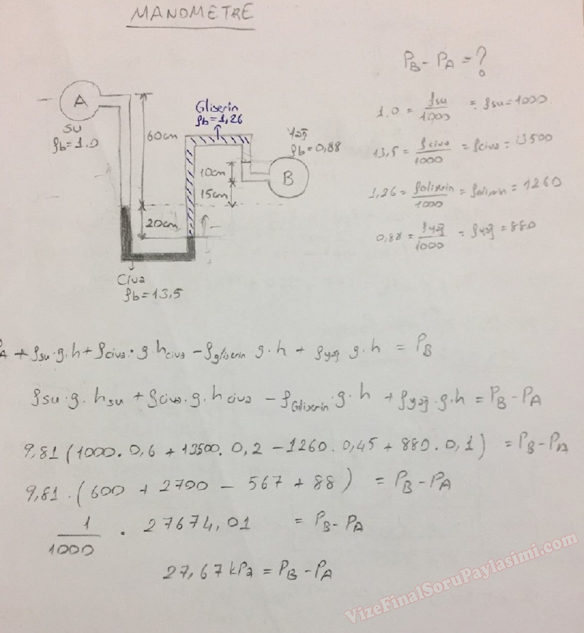 Çalışma Soruları Çıkmış Sorular Ders Notları cevaplari cozumleri Akışkanlar Mekaniği -1 manometre GERİ DÖN-