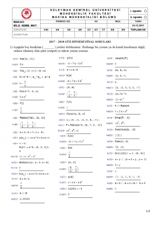 Bil. Des. Sembolik Matematik Final Soruları ve Cevapları 19-01-2018, 00:24
