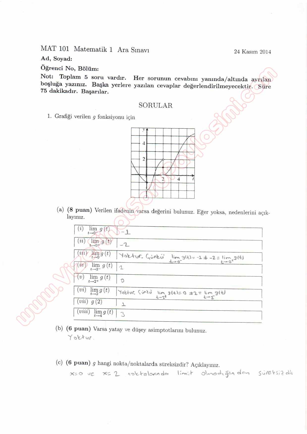 Matematik -1 Dersi Vize Soruları ve Cevapları