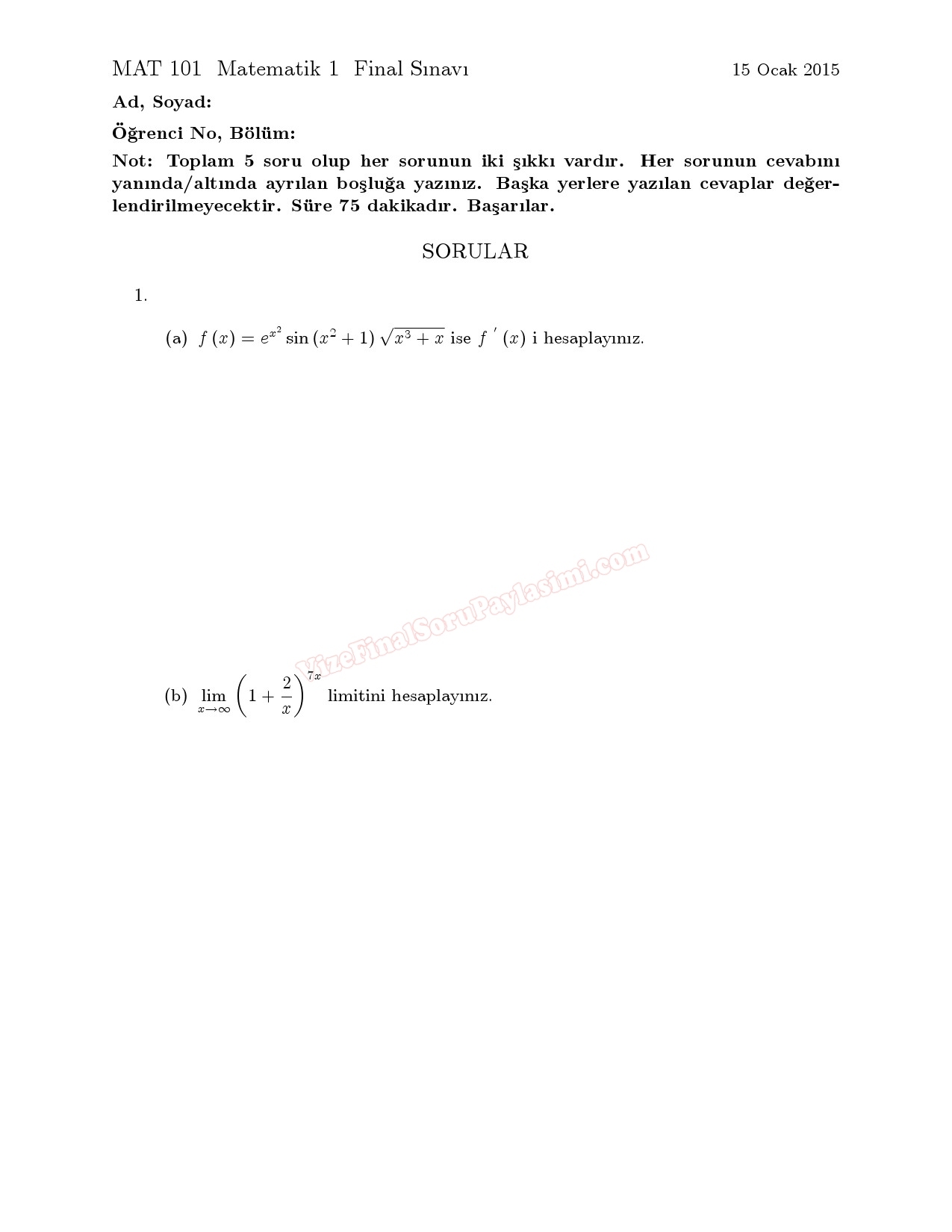 Matematik - 1 Final Soruları ve Cevapları 10-04-2017, 16:52