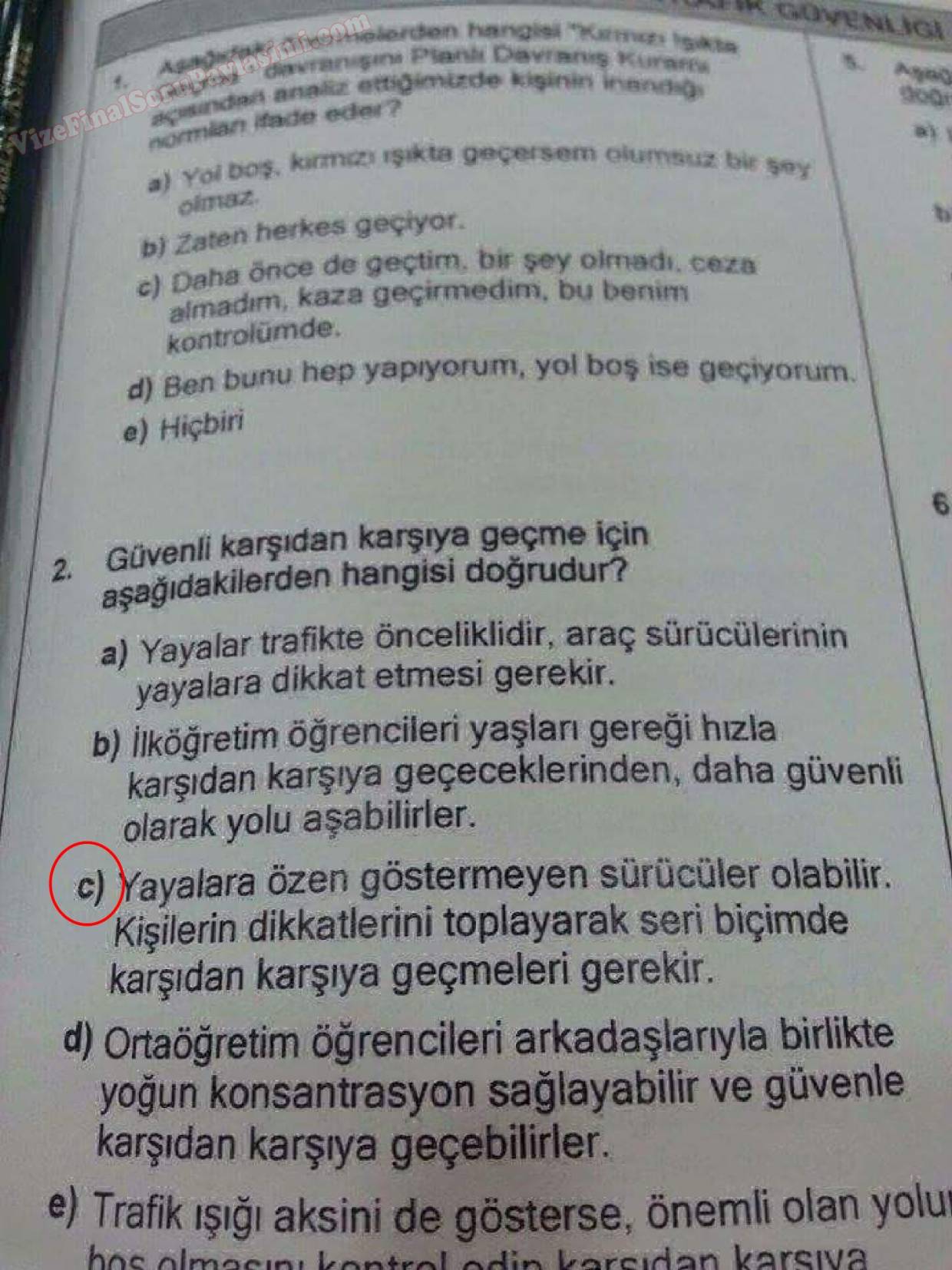 Trafik Güvenliği Dersi Sınav Soruları