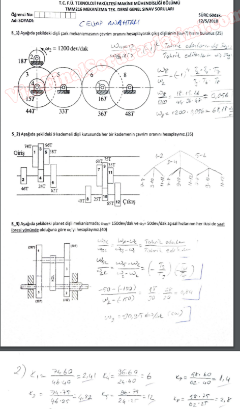 Vize ve Final Soruları / Fırat Üniversitesi / Mekanizma Tekniği Dersi