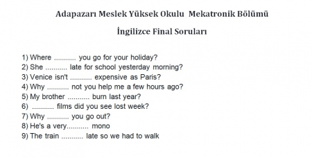 İngilizce Final Soruları - Adapazarı Meslek Yüksekokulu 31-07-2016, 16:16