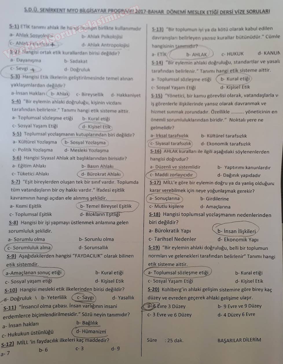Vize ve Final Soruları / Süleyman Demirel Üniversitesi / Meslek Etiği Dersi