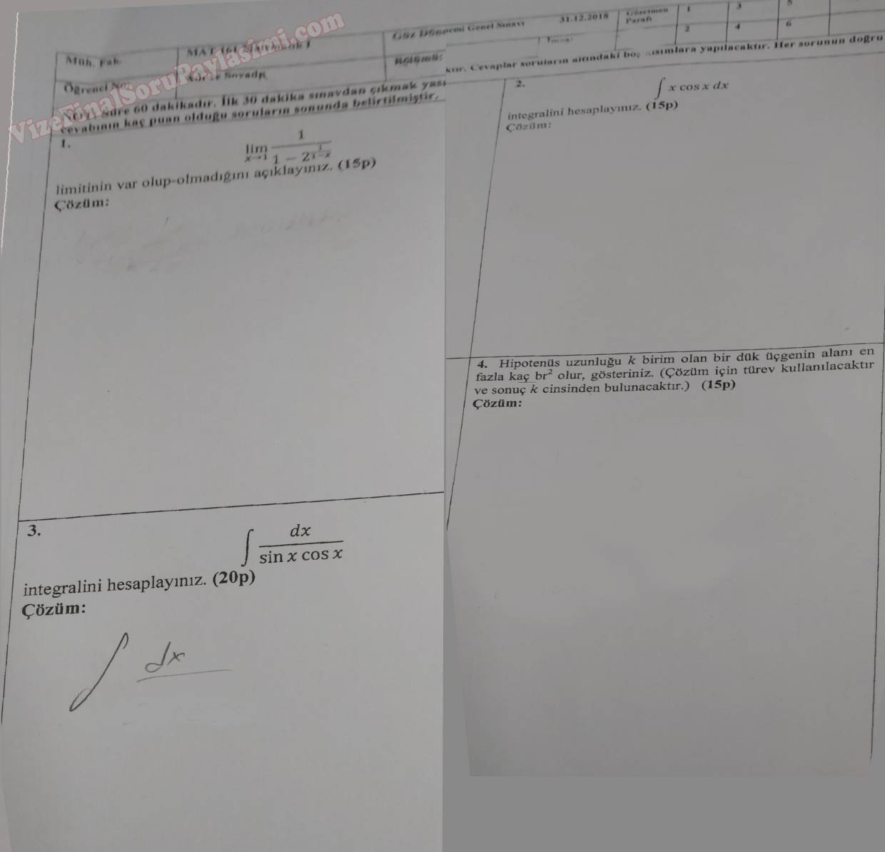 Matematik -2 Vize Soruları ve Cevapları 30-05-2018, 21:24