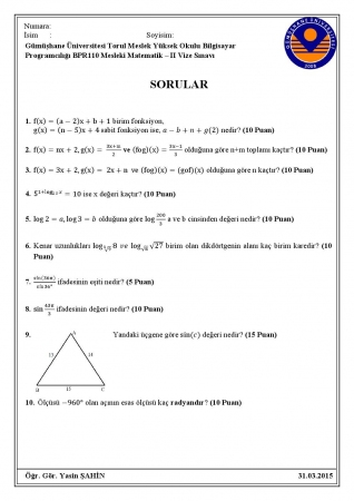 Mesleki Matematik -1 Vize Soruları 2014 14-01-2016, 03:29