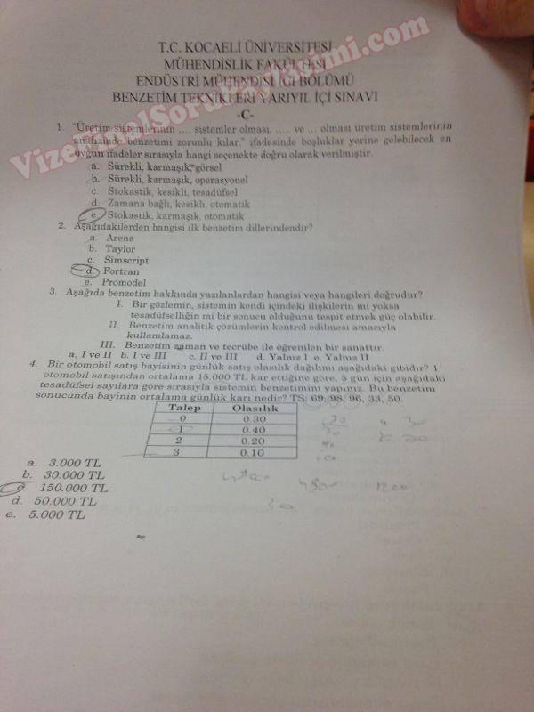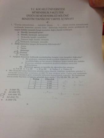 Vize ve Final Soruları / Kocaeli Üniversitesi / Benzetim Teknikleri Dersi