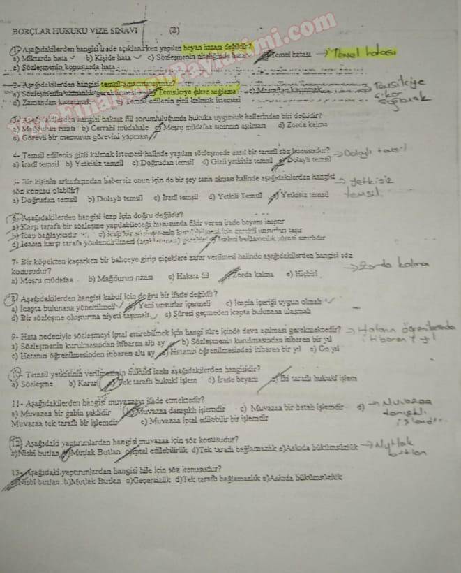 Borçlar Hukuku Vize Soruları ve Cevapları 15-06-2017, 16:39