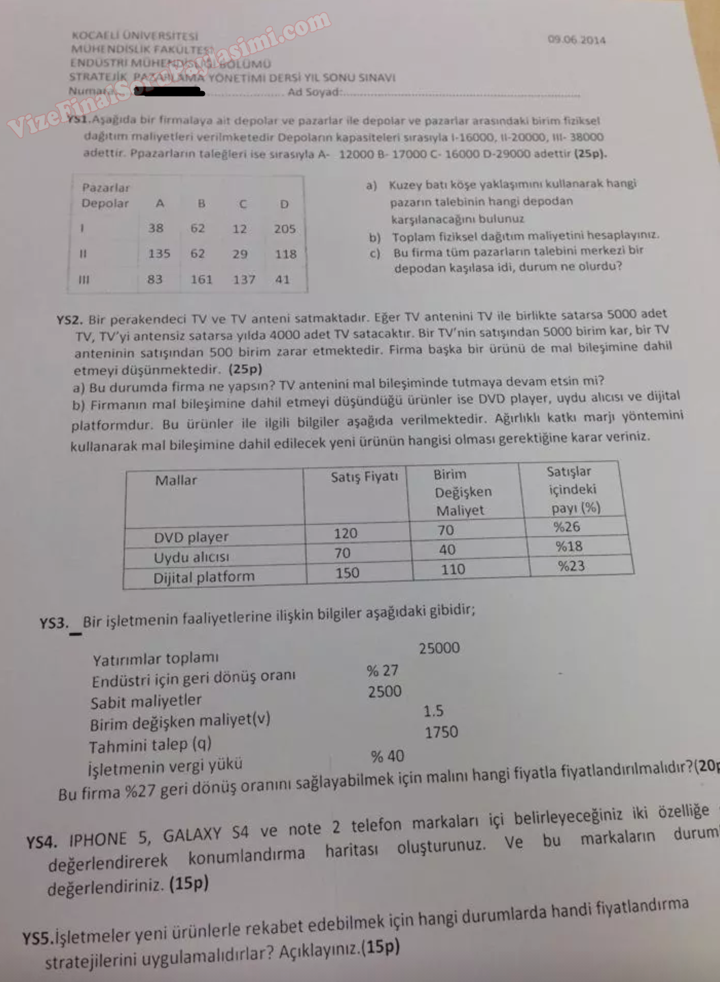 Vize ve Final Soruları / Kocaeli Üniversitesi / Stratejik Pazarlama Yönetimi Dersi
