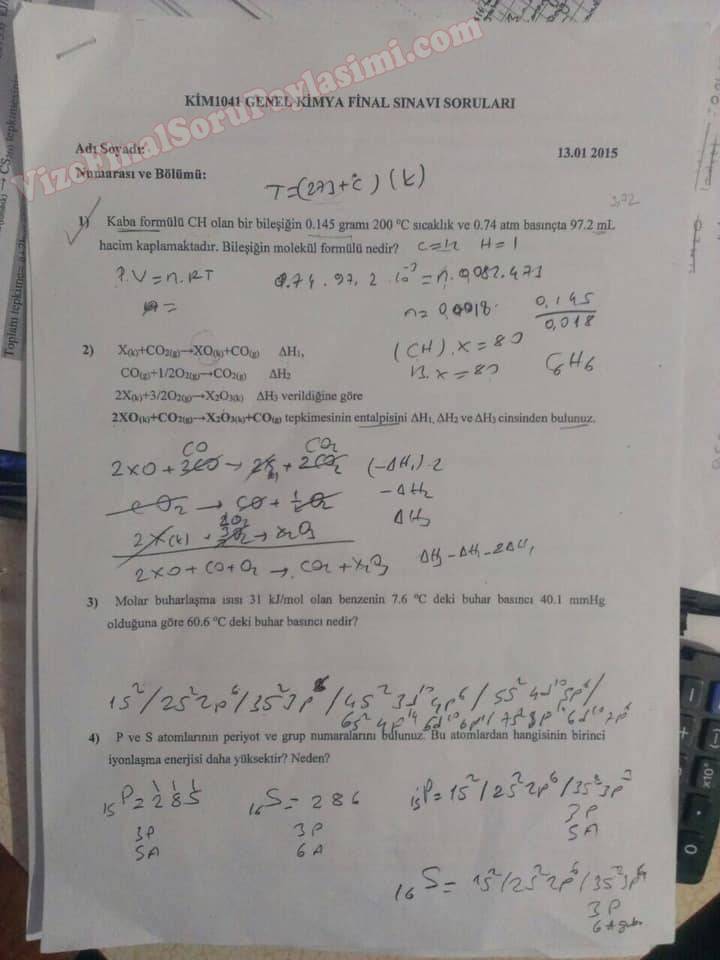 Genel Kimya Dersi Final Soruları - 2014 8-01-2015, 15:27