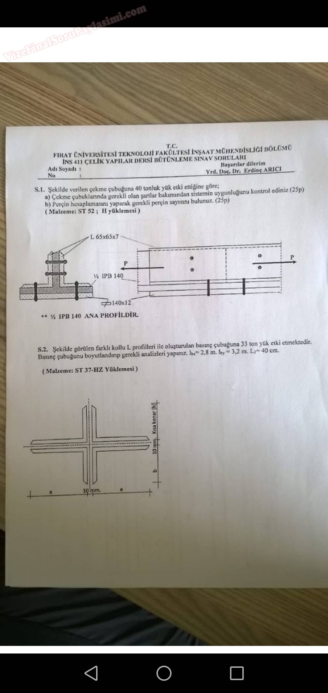 Çelik Yapılar Bütünleme Soruları 9-07-2015, 00:37