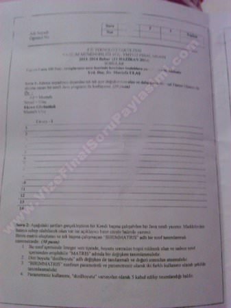 Algoritma ve Programlama Dersi Mazeret Sınavı Soruları( 21-06-2014, 01:07