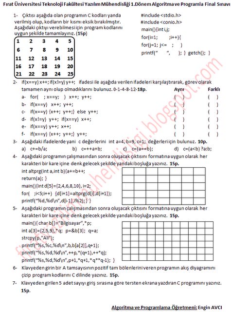Algoritma ve Programlama Dersi Final Soruları(13.06.2014) 21-06-2014, 01:09