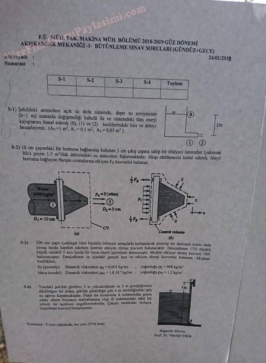 Vize ve Final Soruları / Fırat Üniversitesi / Akışkanlar Mekaniği -1