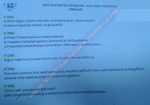 İşletim Sistemleri Dersi Sınav Soruları 23-11-2014, 11:15