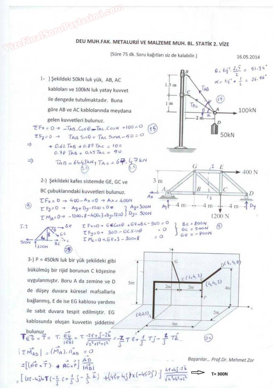 Statik Dersi Vize Soruları Ve Çözümleri 26-10-2014, 23:24