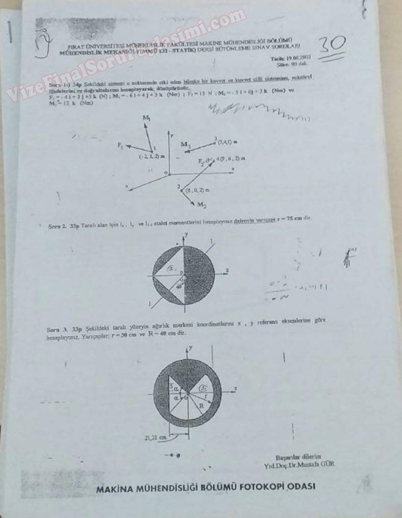 Vize ve Final Soruları / Fırat Üniversitesi / Mühendislik Mekaniği 1