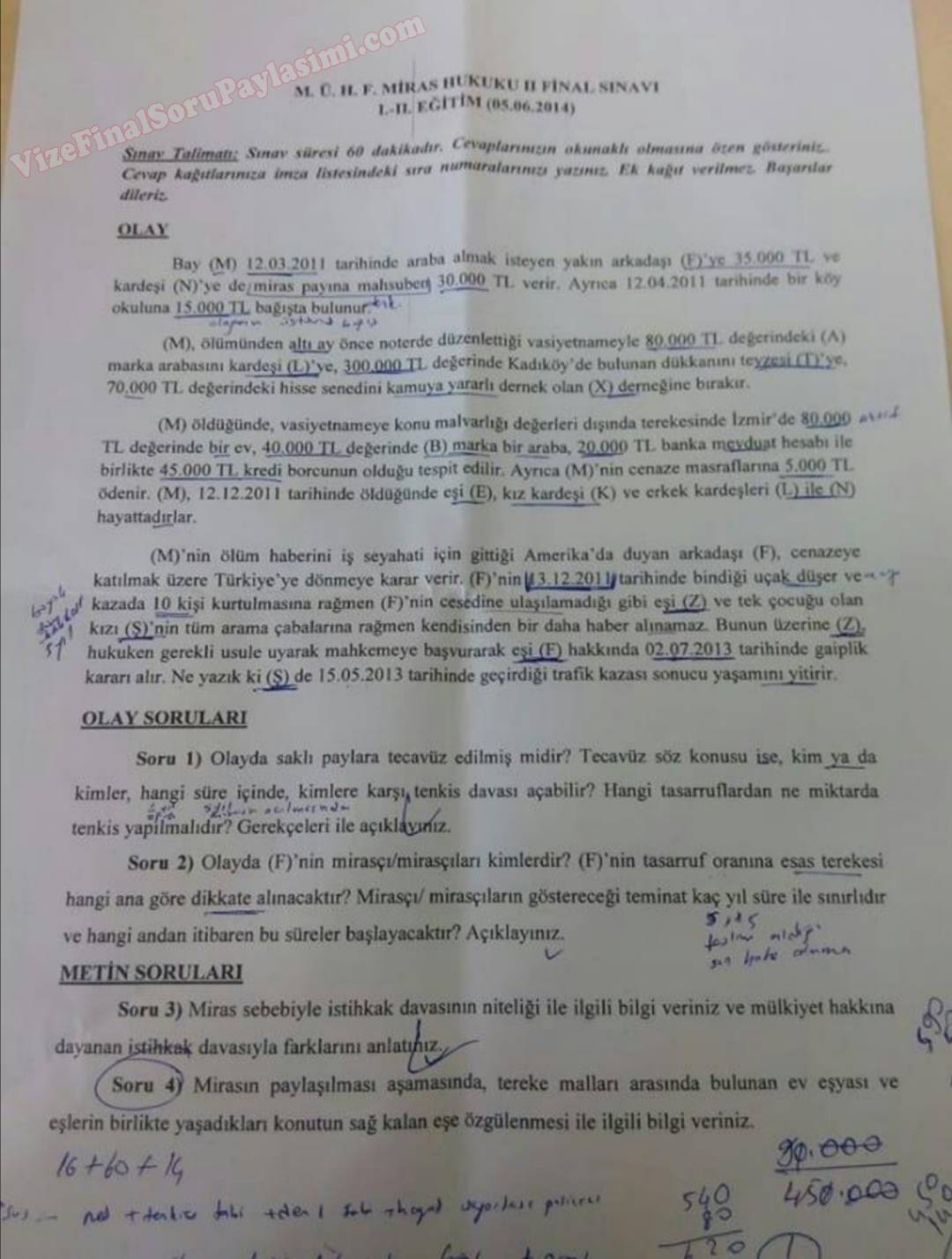 Vize ve Final Soruları / Marmara Üniversitesi / Miras Hukuku