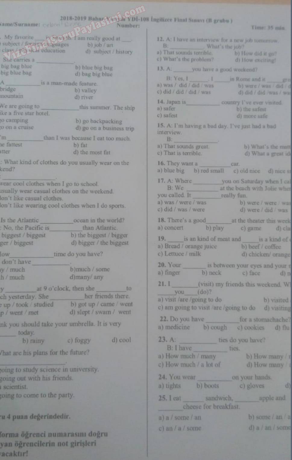 İngilizce -1 Final Soruları - 2017 18-01-2017, 20:04