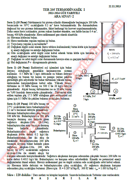 Termodinamik-1 Vize Soruları Ve Cevapları - 22.11.2013