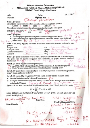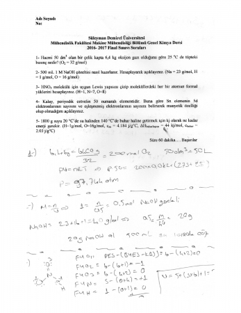 Genel Kimya Dersi Vize Soruları ve Cevapları - 2015 10-05-2016, 20:30
