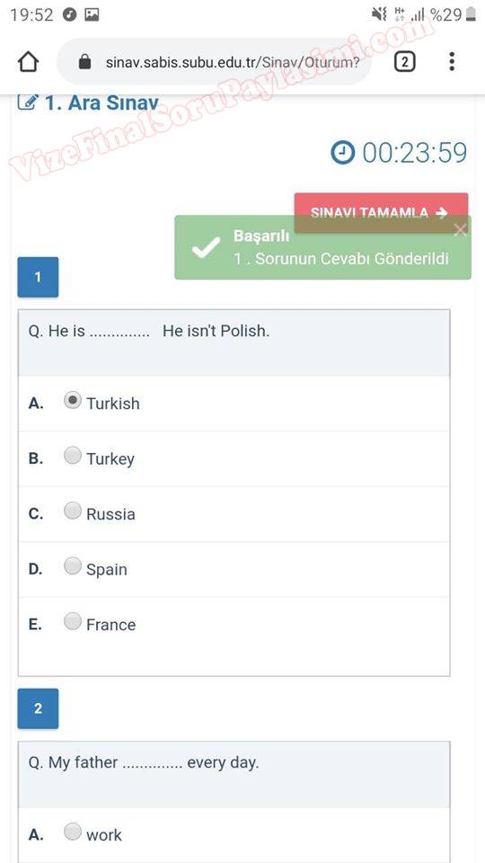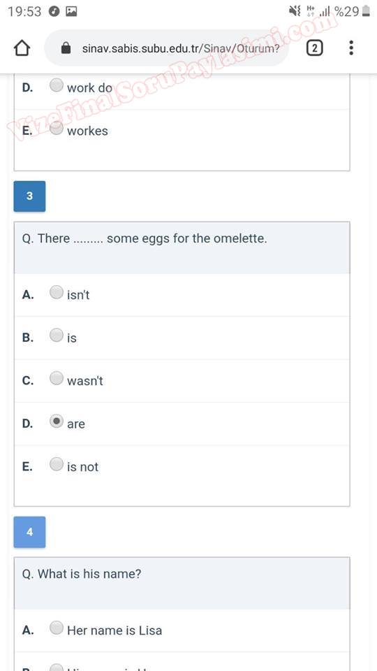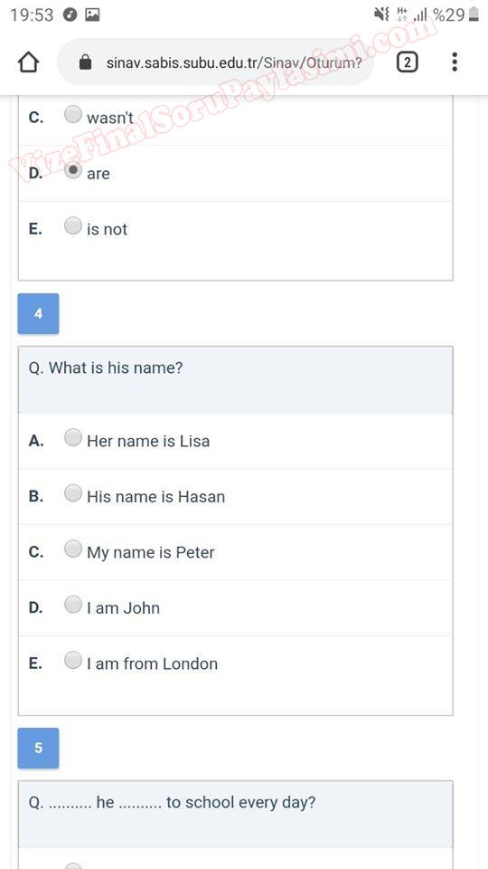 ingilizce dersi vize sorulari saü GERİ DÖN-