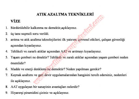 Atık Azaltma Teknikleri Vize Soruları 20-03-2015, 22:22