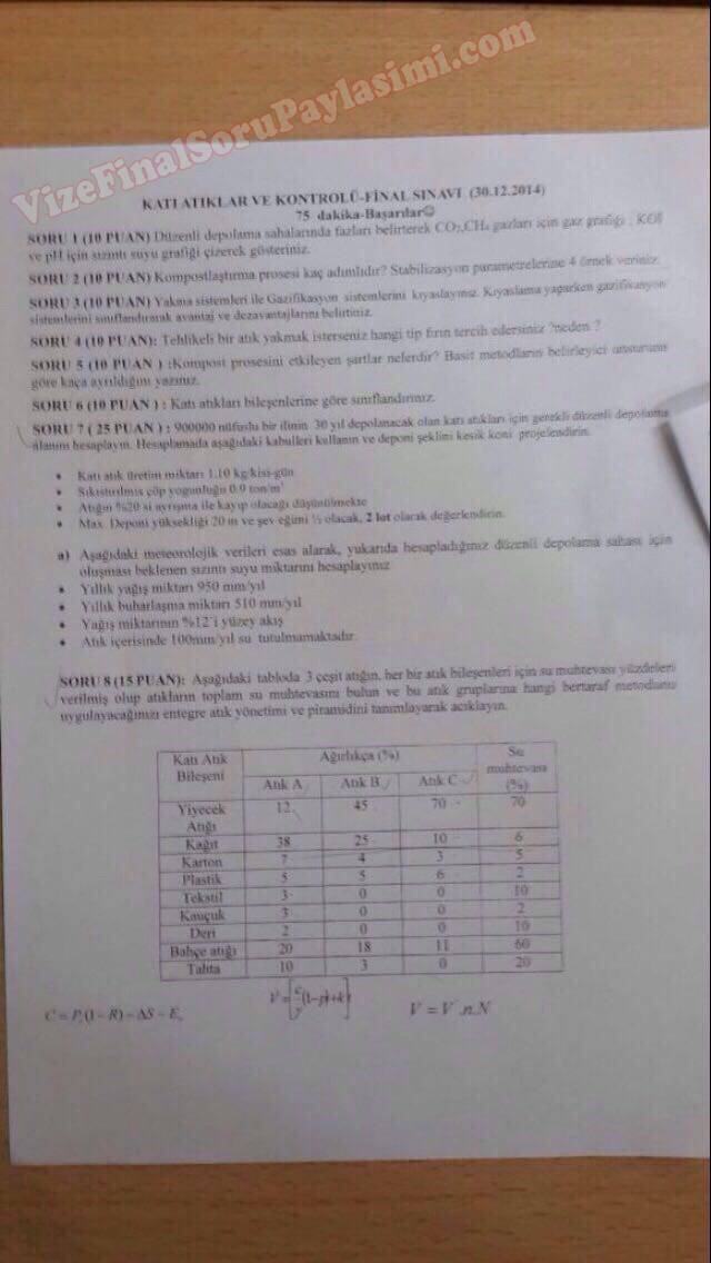 Katı Atık Tesisi Tasarımı Final Soruları 23-03-2015, 21:25