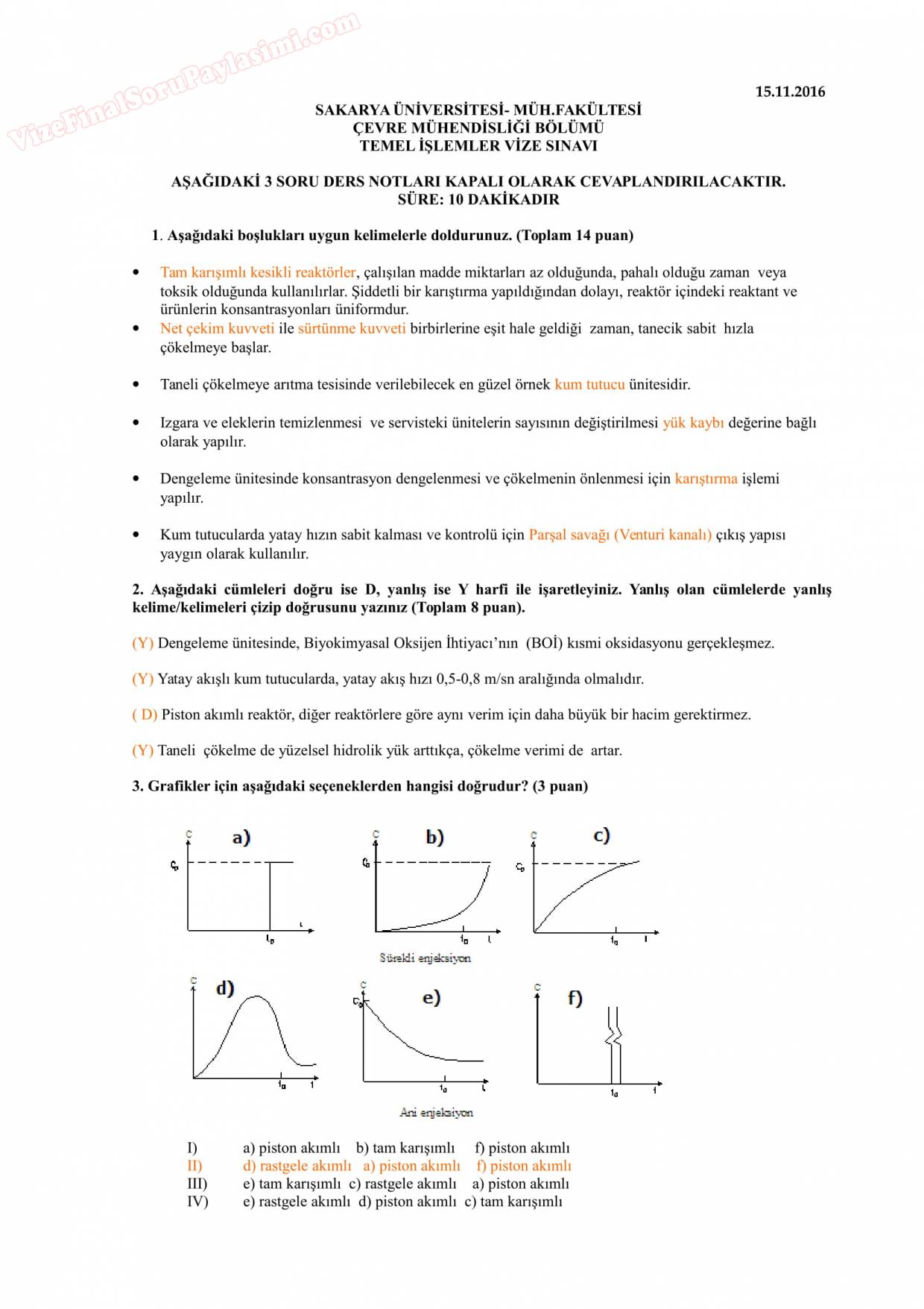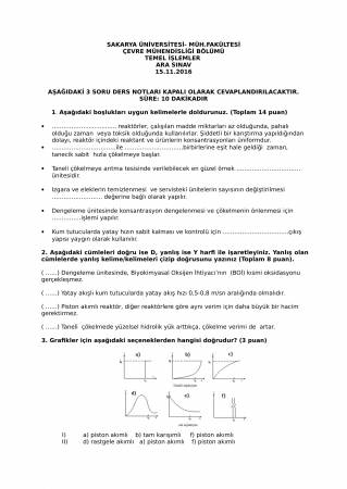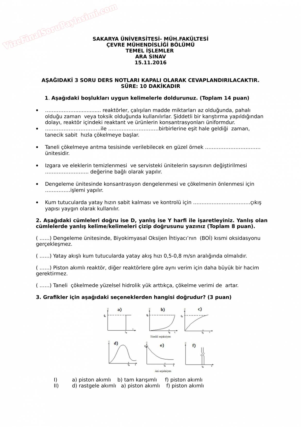 Vize ve Final Soruları / Sakarya Üniversitesi / Temel İşlemler