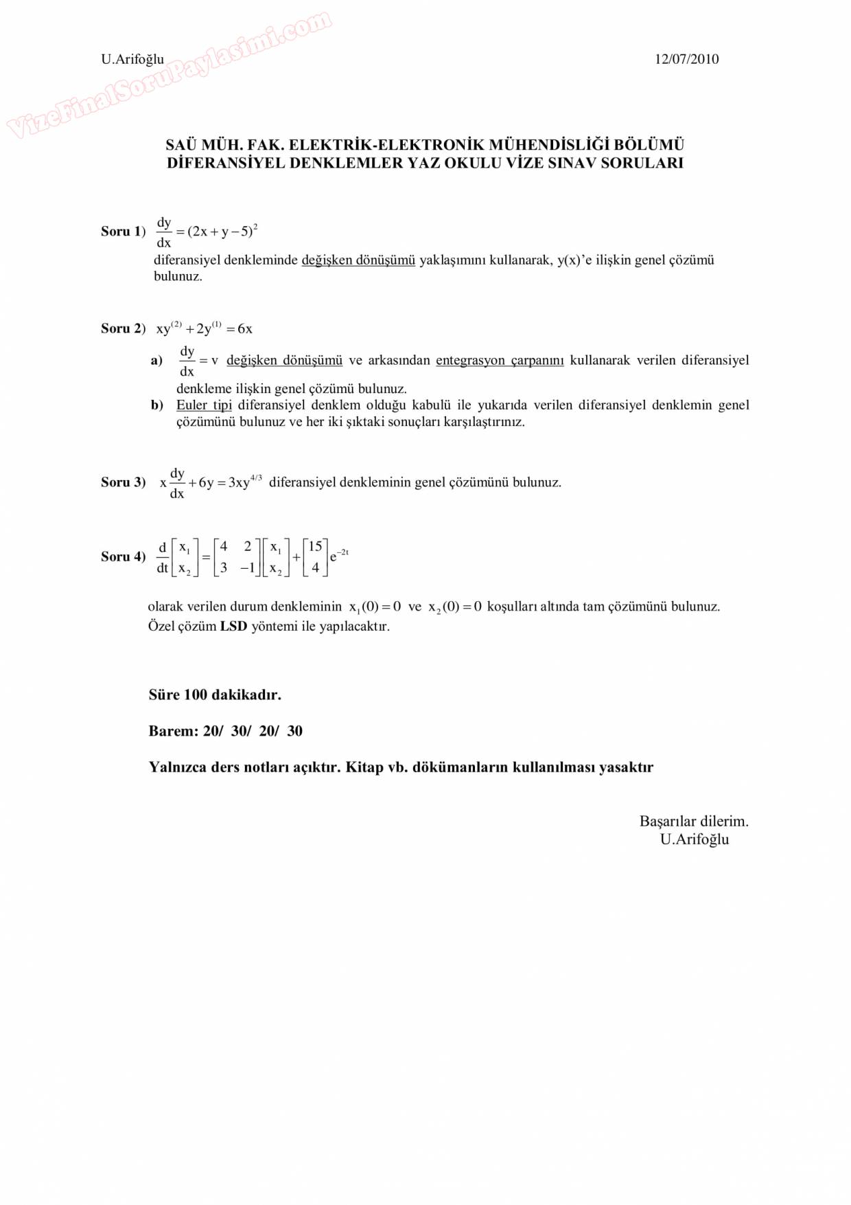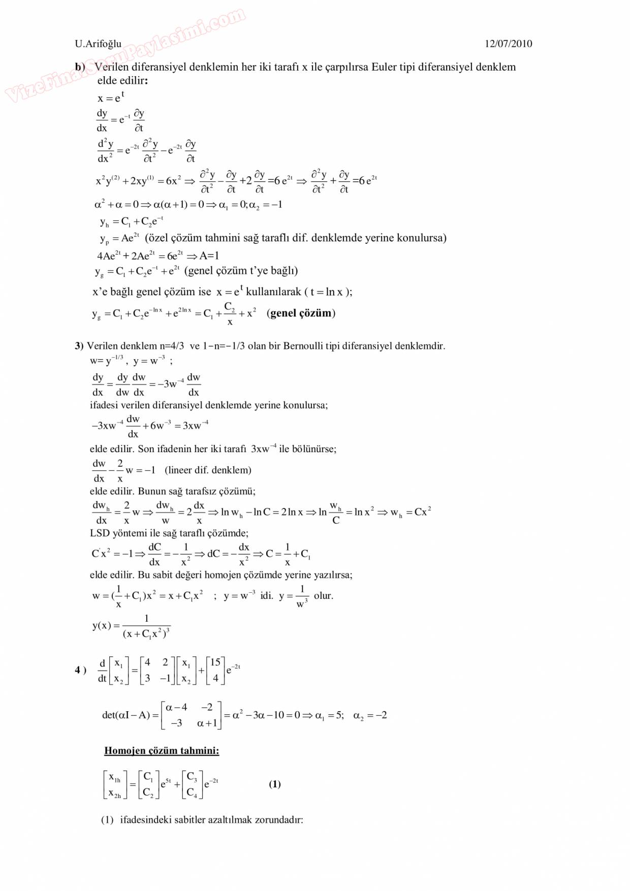 Diferansiyel Denklemler Vize Soruları Ve Cevapları 13-05-2015, 17:40