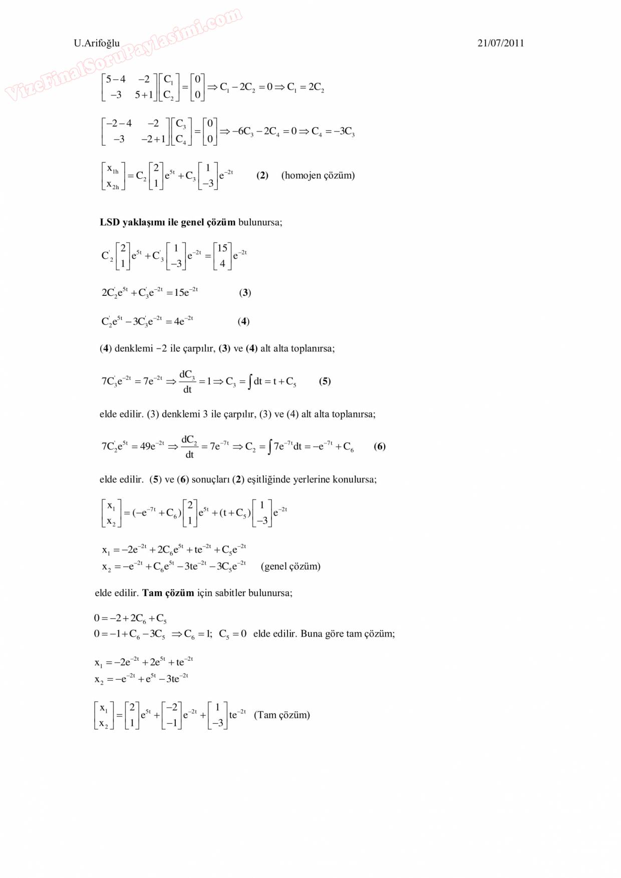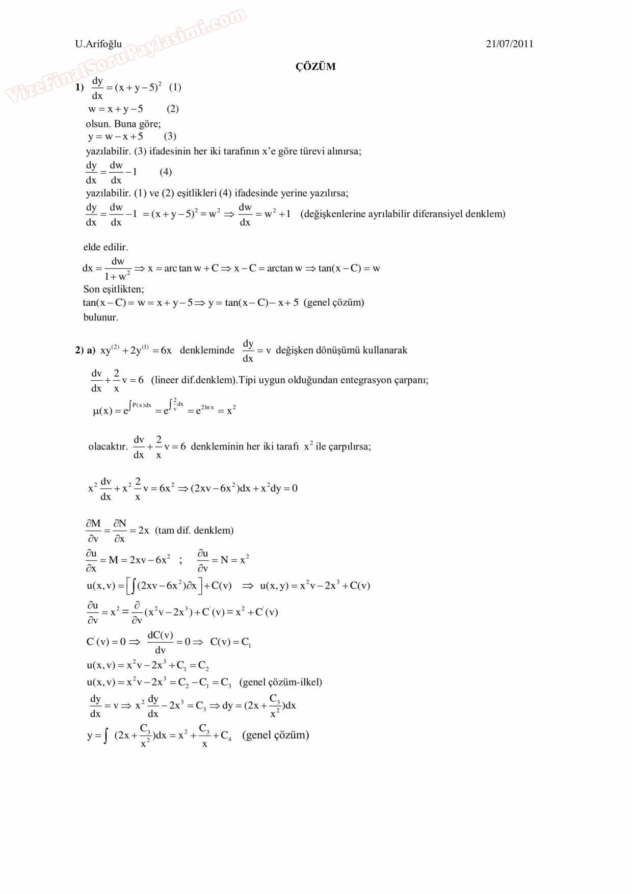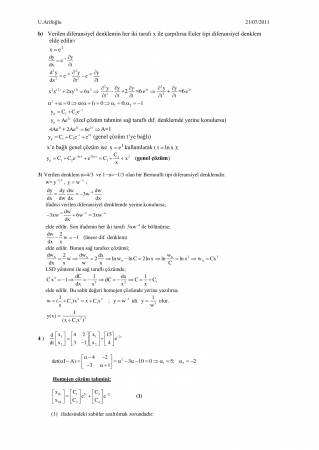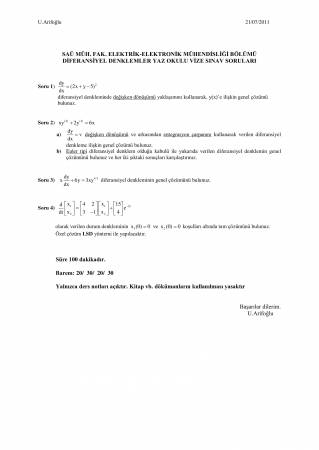 Vize ve Final Soruları / Sakarya Üniversitesi / Diferansiyel Denklemler