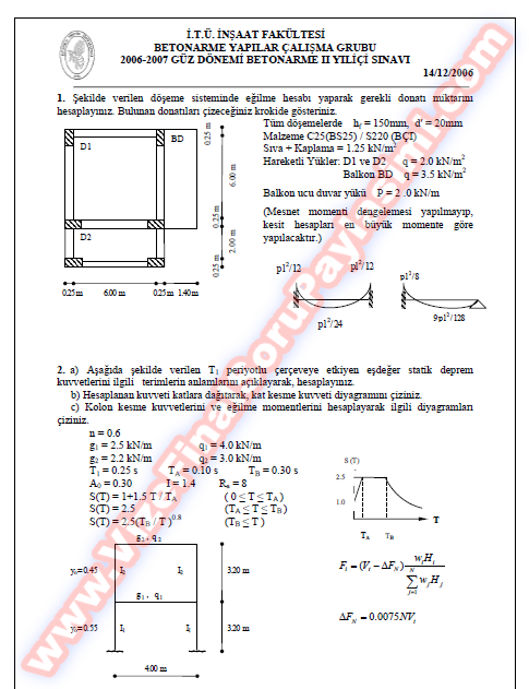 Vize ve Final Soruları / İstanbul Teknik Üniversitesi / Betonarme -2