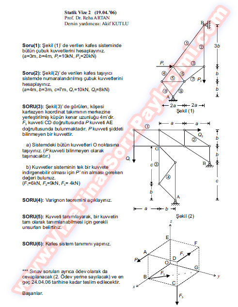 Statik Dersi Vize Soruları Ve Çözümleri 27-10-2014, 22:17