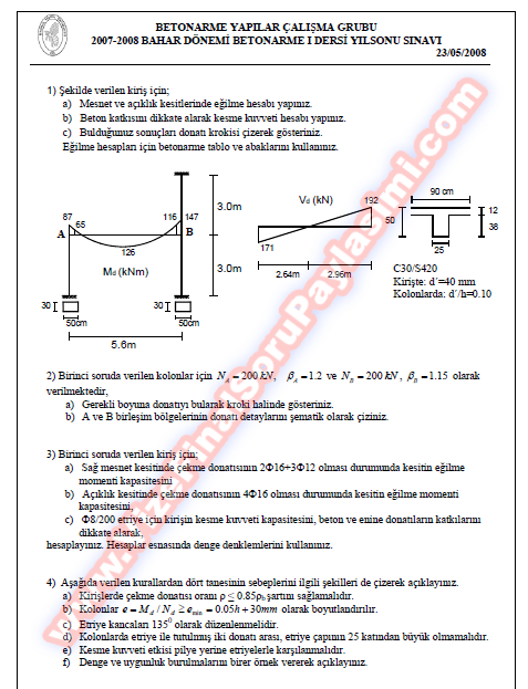 Betonarme-2 Vize Soruları-2008 30-11-2014, 22:59