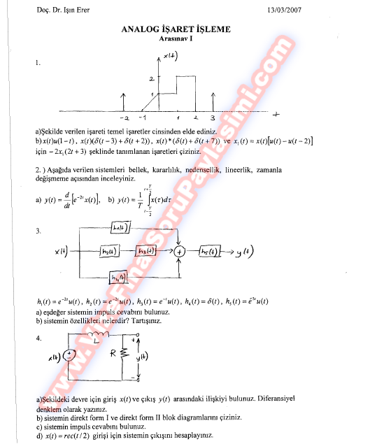 Analog İşaret İşleme Vize Soruları Ve Cevapları - 13.03.2007