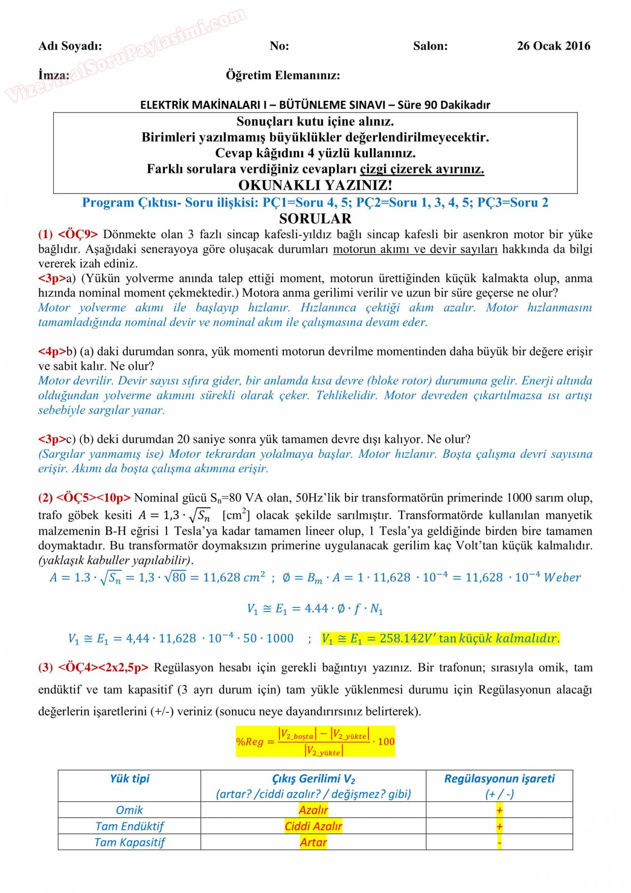 Elektrik Makineleri Bütünleme Soruları ve Cevapları 28-11-2019, 20:15
