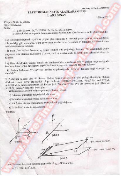 Elektromagnetik Alana Giriş Vize Soruları - 01.04.2011